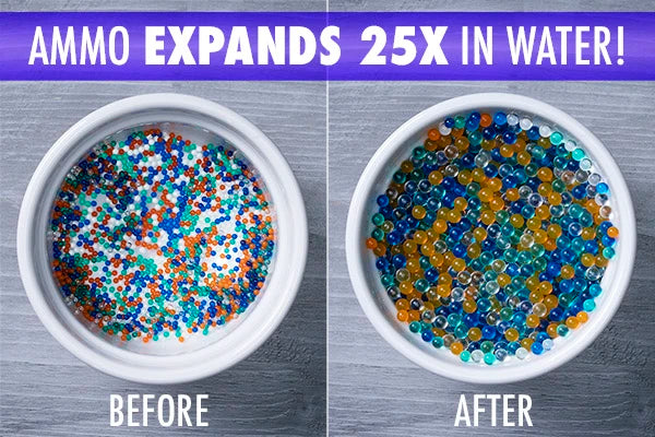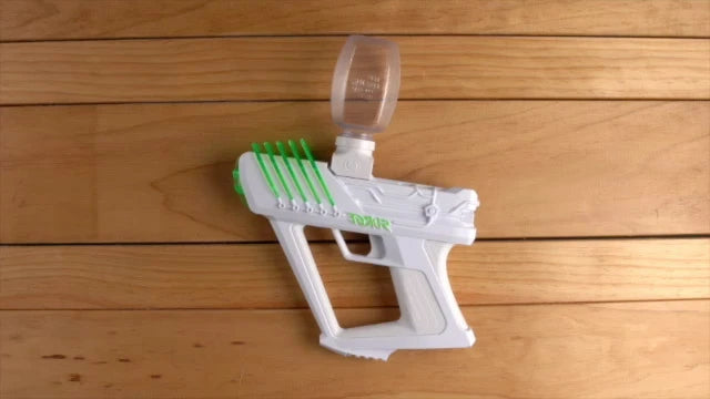 The ammo you'll be using are Gellets, tiny water marbles that you pre-soak to give them just the right amount of give to explode on impact (think tiny Spitballs). With a battery-powered automatic-fire blaster shooting at 150 feet-per-second, a hit will raise the stakes of battle with just enough of a slight sting to make you regret not getting the drop first. They're also biodegradable, mess-free, and stain-free, so you don't need to worry about chasing them down to collect every last one after you've called a truce.