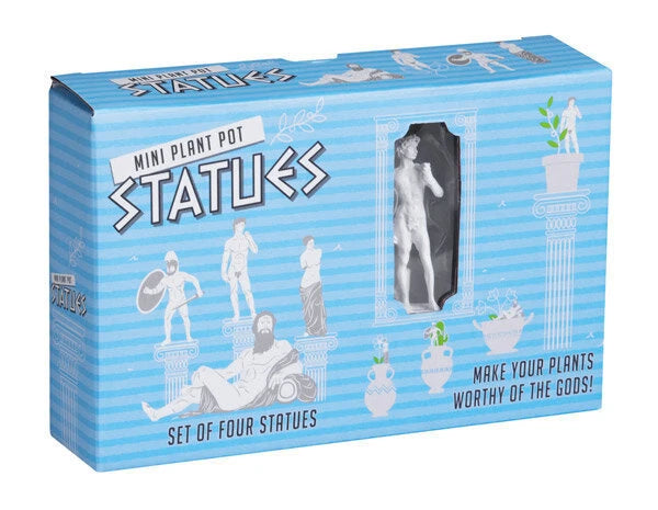 The set of four figures includes a warrior, Zeus, a replica of Venus de Milo, and Michelangelo's David. Use the tiny pointed stakes to anchor your ancient art pieces into the soil and marvel at the menagerie you've created!